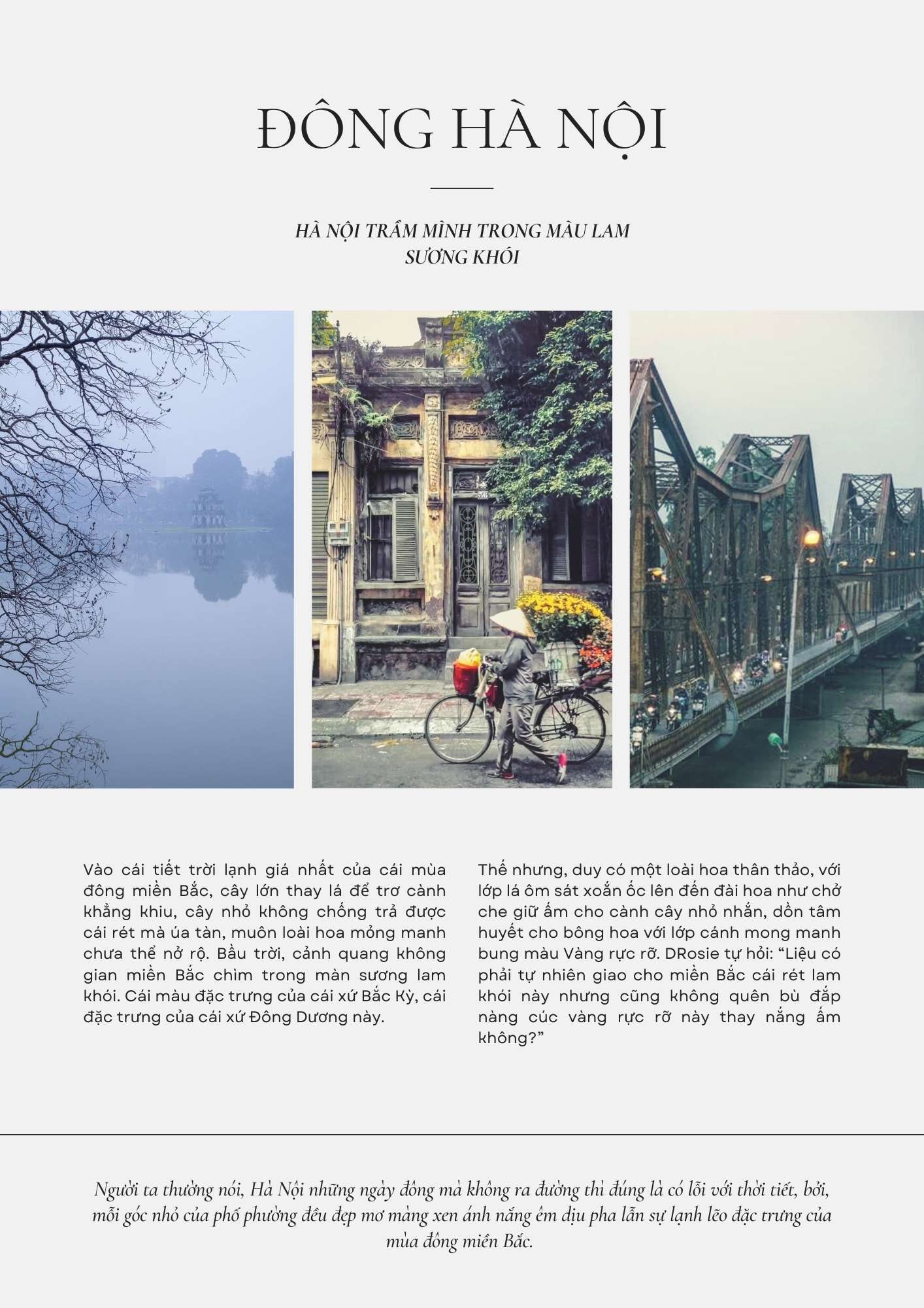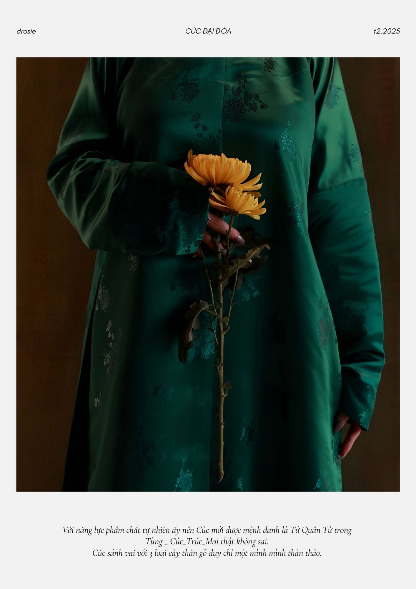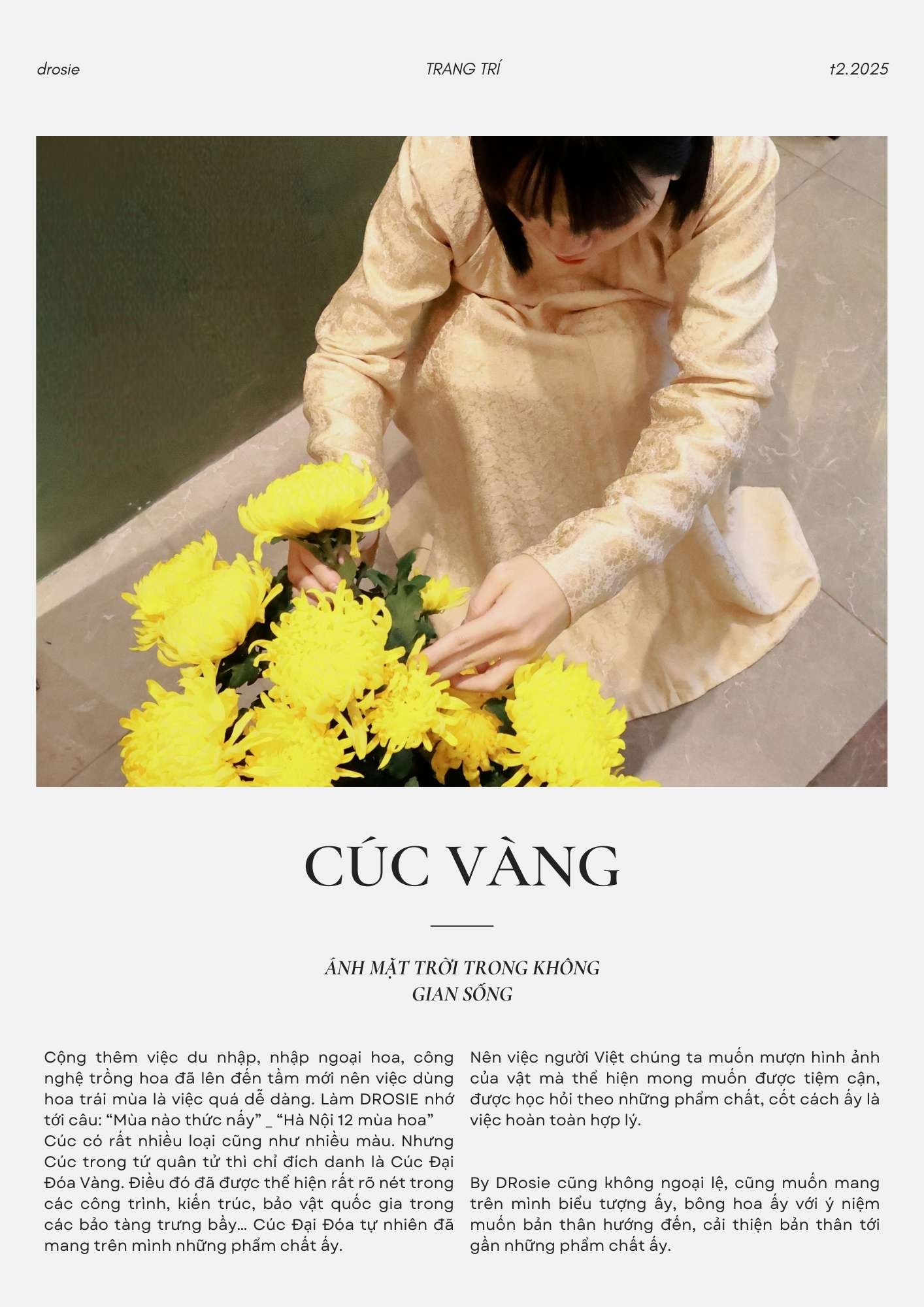 Thế nhưng, duy có một loài hoa thân thảo, với lớp lá ôm sát xoắn ốc lên đến đài hoa như chở che giữ ấm cho cành cây nhỏ nhắn, dồn tâm huyết cho bông hoa với lớp cánh mong manh bung màu Vàng rực rỡ. DRosie tự hỏi: “Liệu có phải tự nhiên giao cho miền Bắc cái rét lam khói này nhưng cũng không quên bù đắp nàng cúc vàng rực rỡ này thay nắng ấm không?”