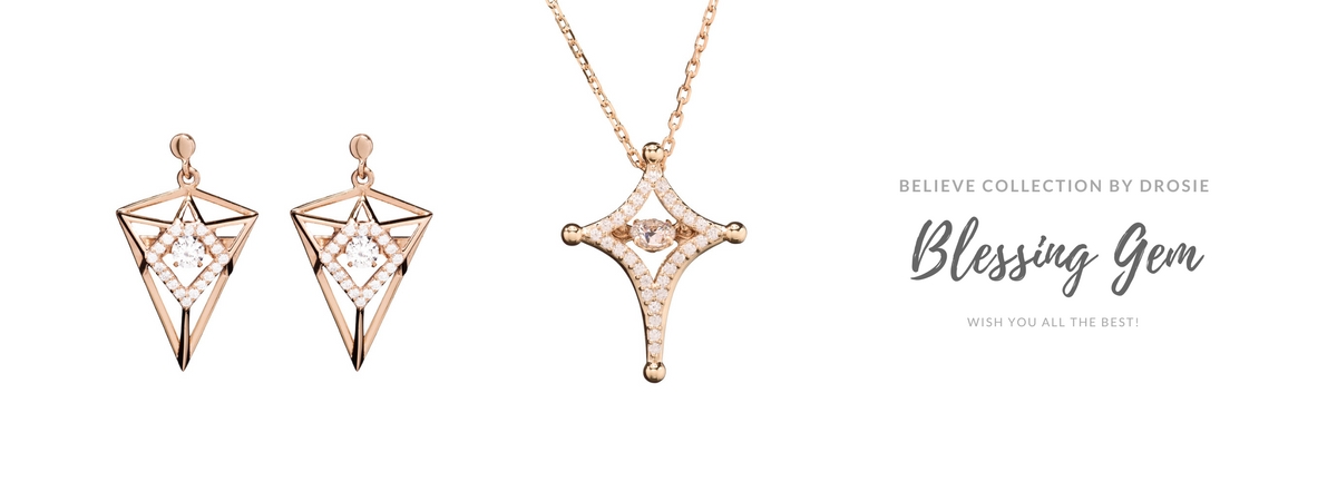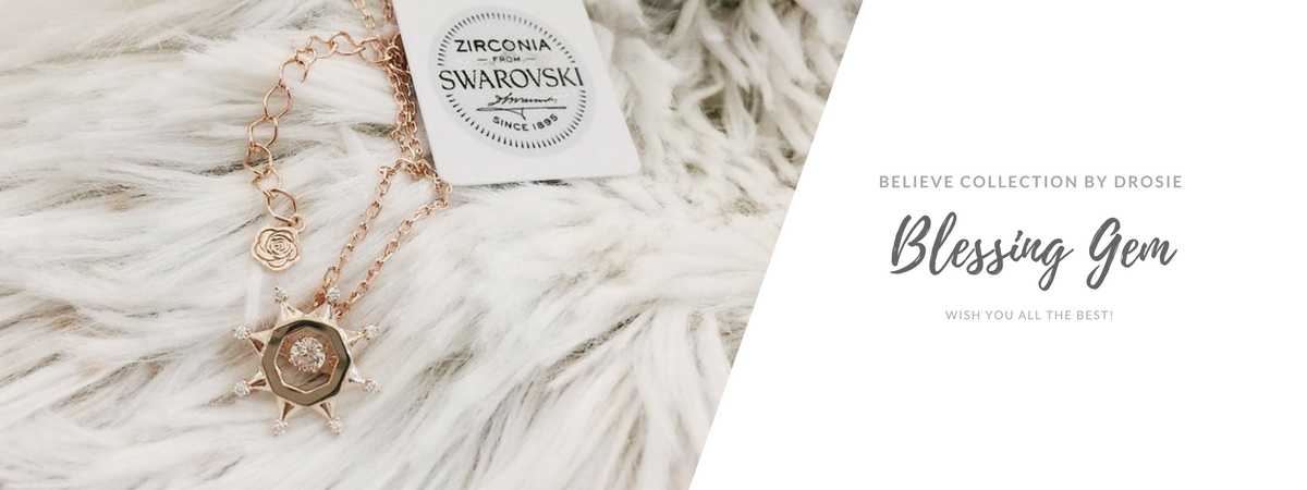 Trong bộ sưu tập BELIEVE mùa thu 2017 của mình, D’Rosie lựa chọn viên đá cao cấp Zirconia cùng công nghệ Dancing Stone cung cấp bởi Tập đoàn đá quý Swarovski làm chất liệu để truyền tải trọn vẹn được những ý nghĩa trong sản phẩm của mình. D’Rosie gọi những viên đá Zirconia rực rỡ biết nhún nhảy “dancing” ấy là BLESSING GEM – viên đá tượng trưng cho những lời chúc phúc, sự cầu mong những điều may mắn, tốt đẹp nhất sẽ đến với mọi người.