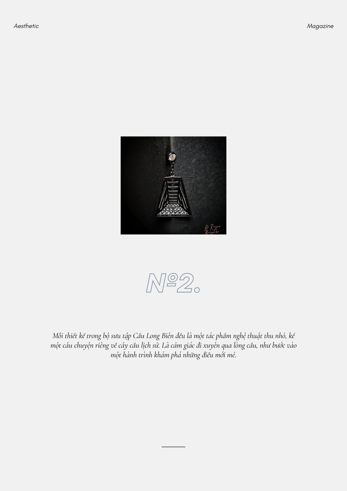Mỗi thiết kế trong bộ sưu tập Cầu Long Biên đều là một tác phẩm nghệ thuật thu nhỏ, kể một câu chuyện riêng về cây cầu lịch sử. Đó có thể là hình ảnh những nhịp cầu vươn mình mạnh mẽ, là bóng dáng cây cầu in trên mặt nước sông Hồng vào buổi chiều tà, hay là cảm giác đi xuyên qua lòng cầu, như bước vào một hành trình khám phá những điều mới mẻ.