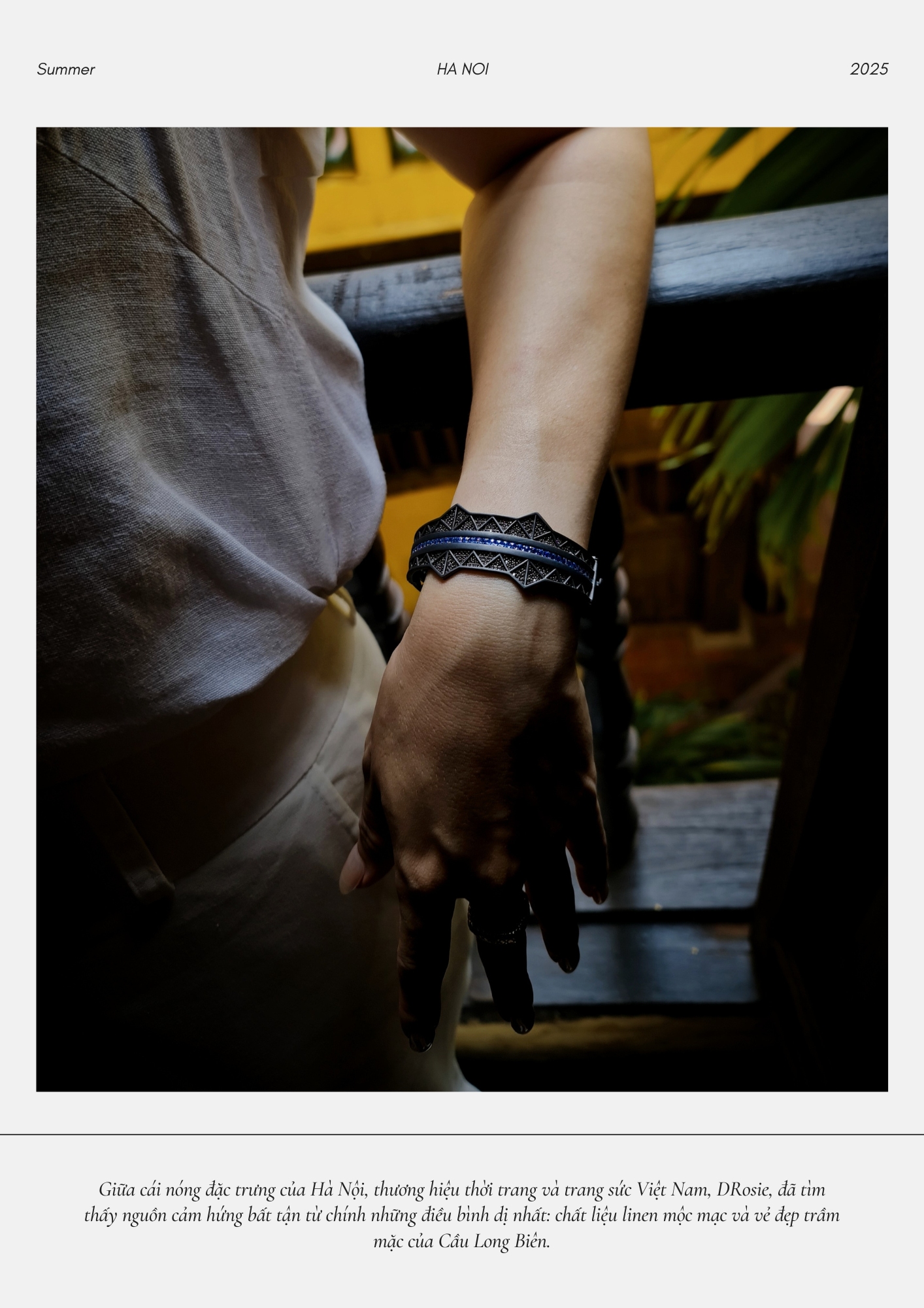 Hành trình khám phá vẻ đẹp Việt của Drosie không dừng lại ở chất liệu linen. Cây Cầu Long Biên, biểu tượng lịch sử của Hà Nội, đã trở thành nguồn cảm hứng cho bộ sưu tập trang sức độc đáo và đầy ý nghĩa.