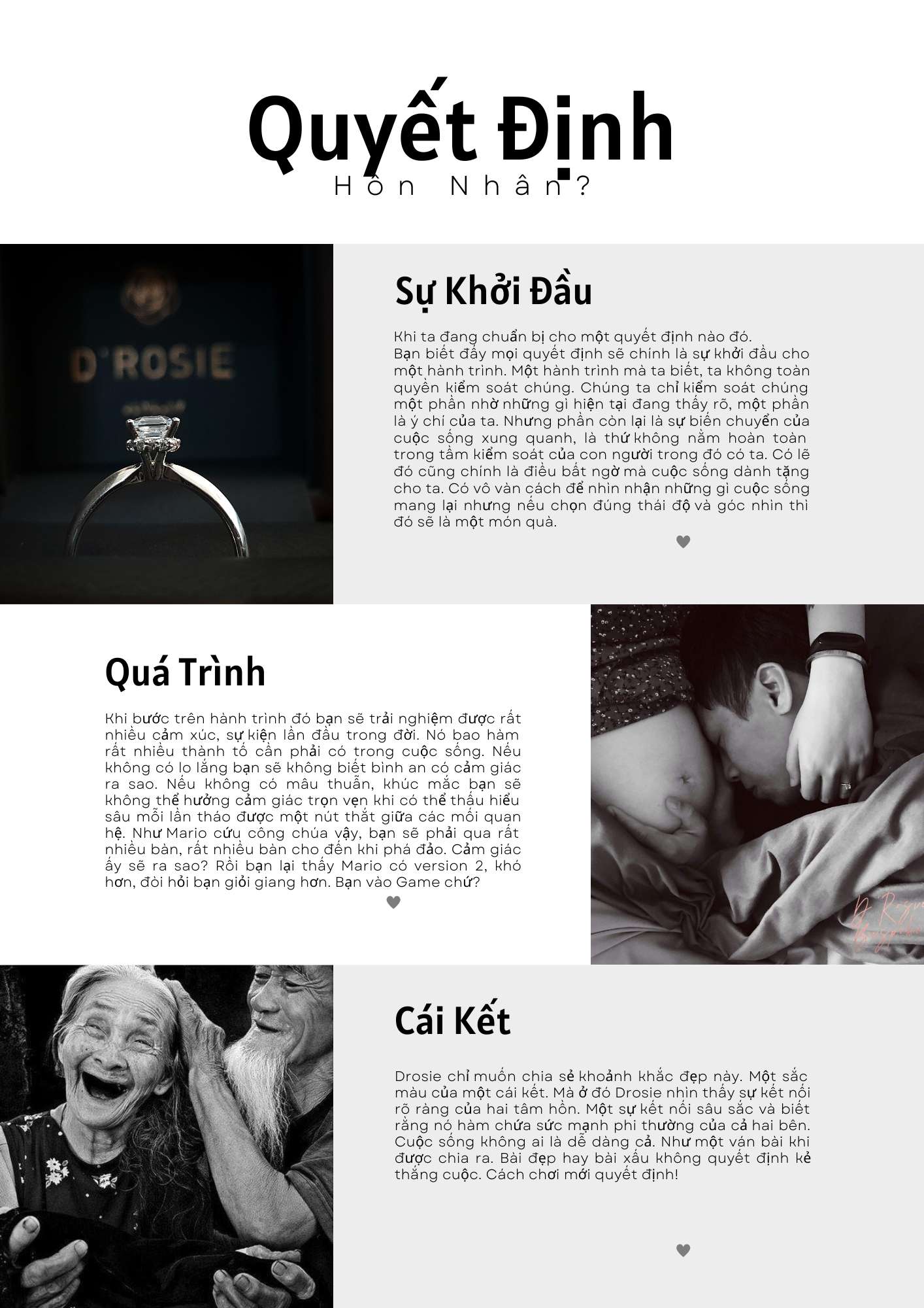 Drosie chỉ muốn chia sẻ khoảnh khắc đẹp này. Một sắc màu của một cái kết. Mà ở đó Drosie nhìn thấy sự kết nối rõ ràng của hai tâm hồn. Một sự kết nối sâu sắc và biết rằng nó hàm chứa sức mạnh phi thường của cả hai bên. Cuộc sống không ai là dễ dàng cả. Như một ván bài khi được chia ra. Bài đẹp hay bài xấu không quyết định kẻ thắng cuộc. Cách chơi mới quyết định!
