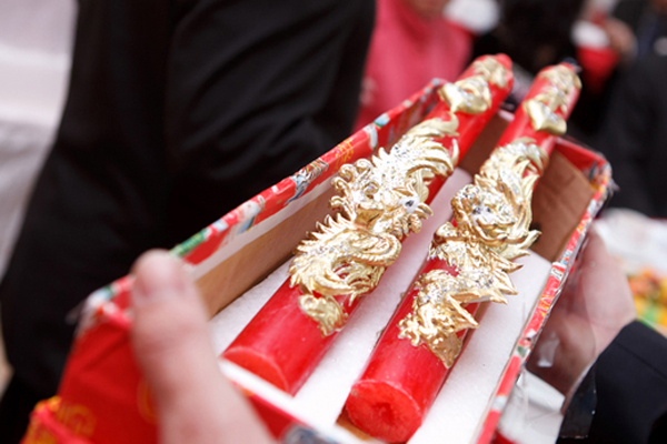 Khác với miền Bắc, chú rể miền Nam sẽ phải mang một tráp có nến. Cặp nến long phụng sẽ được thắp trên bàn thờ gia tiên trong ngày lễ ăn hỏi, minh chứng cho sự ấm