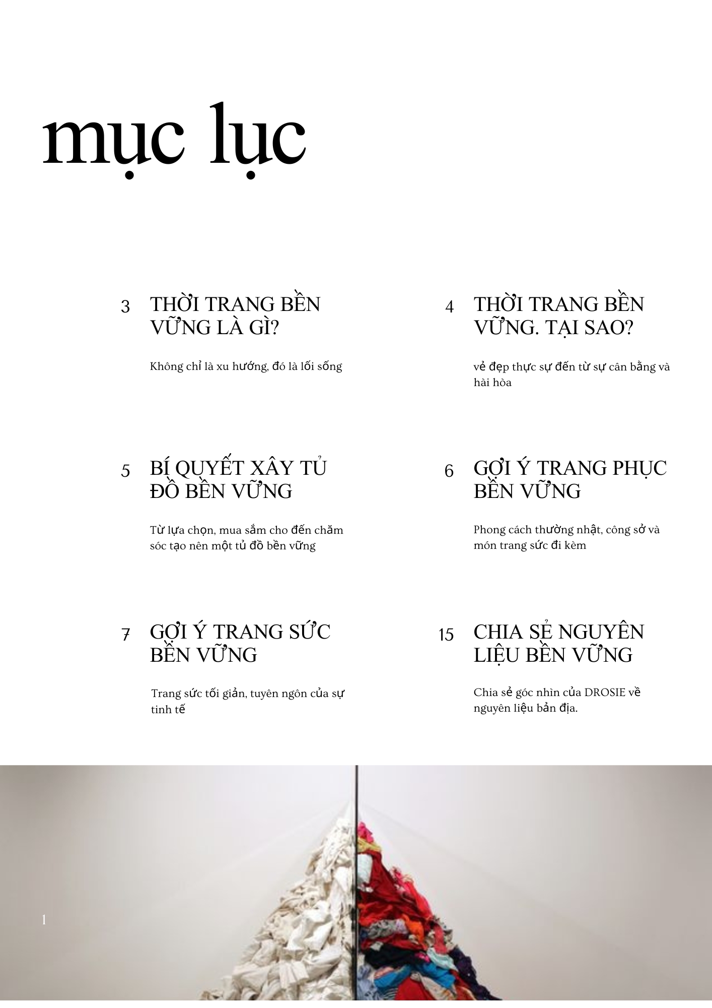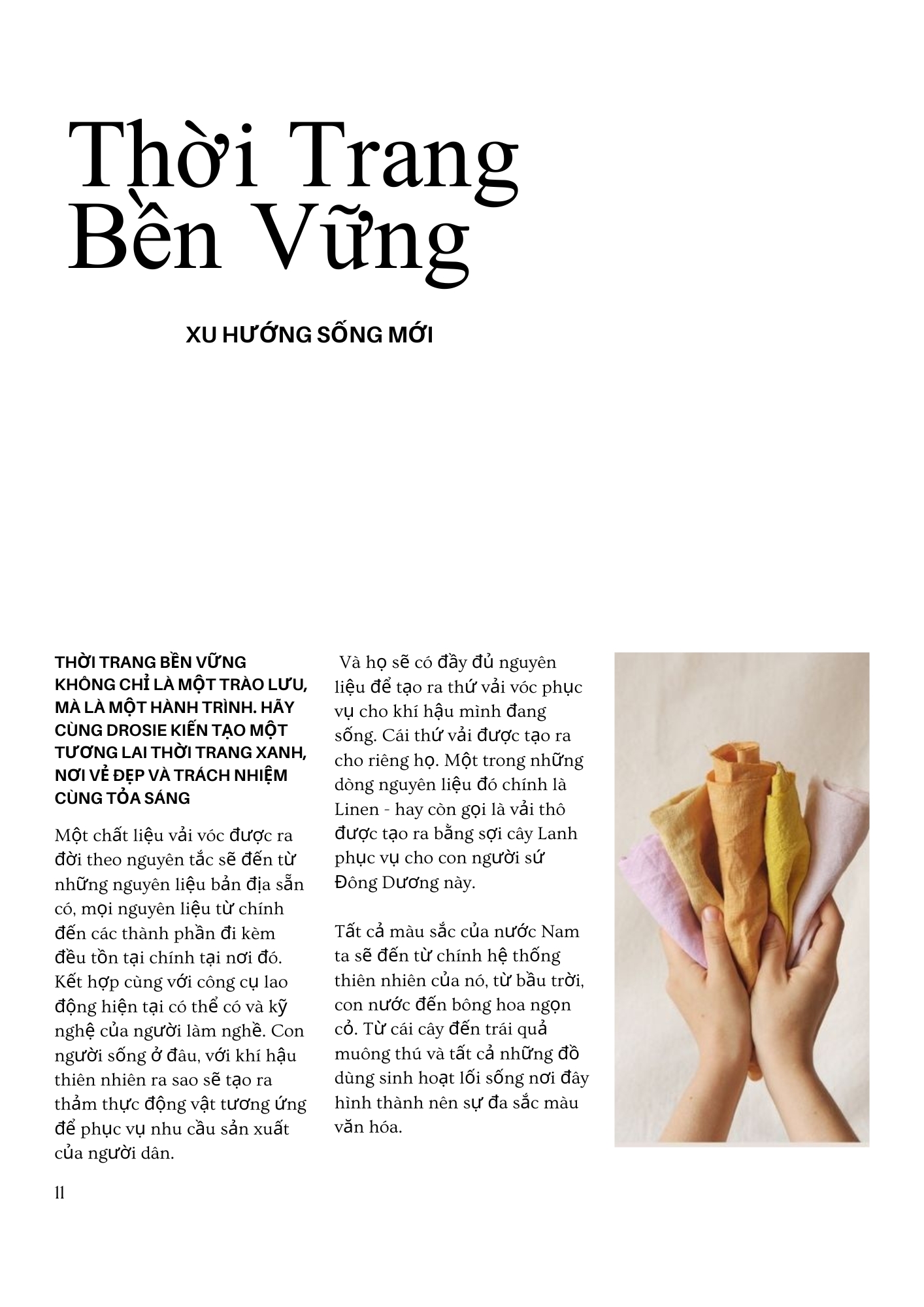 • "Thời trang bền vững không chỉ là một trào lưu, mà là một hành trình. Hãy cùng DROSIE kiến tạo một tương lai thời trang xanh, nơi vẻ đẹp và trách nhiệm cùng tỏa sáng."