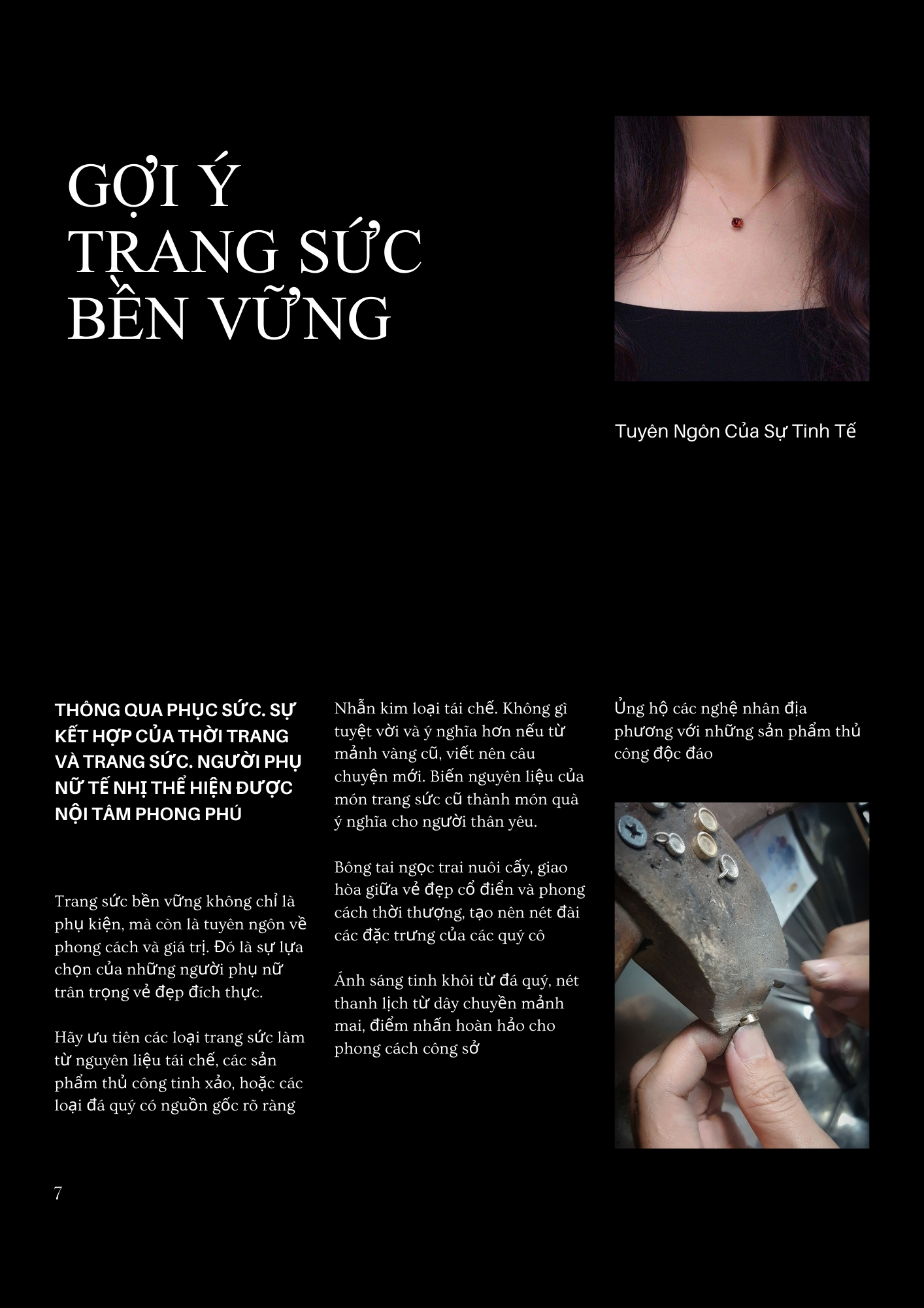 • "Hãy ưu tiên các loại trang sức làm từ nguyên liệu tái chế, các sản phẩm thủ công tinh xảo, hoặc các loại đá quý có nguồn gốc rõ ràng."