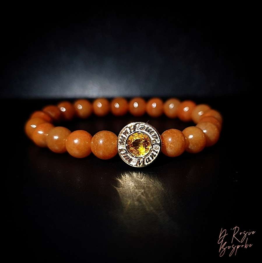Chị cũng tặng mẹ chồng chị 1 chữ Phúc ở mặt sau chiếc Charm. Mặt trước dùng đá tự nhiên Topaz hợp với mệnh Hỏa của bà. Bao quanh 1 câu Chú của nhà Phật.